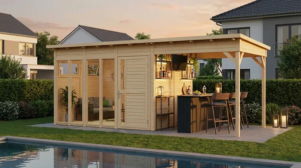 Hochwertige Gartenhäuser & Gartenschuppen aus Holz | BertiloDesign Range Pentus 3 Poolhouse