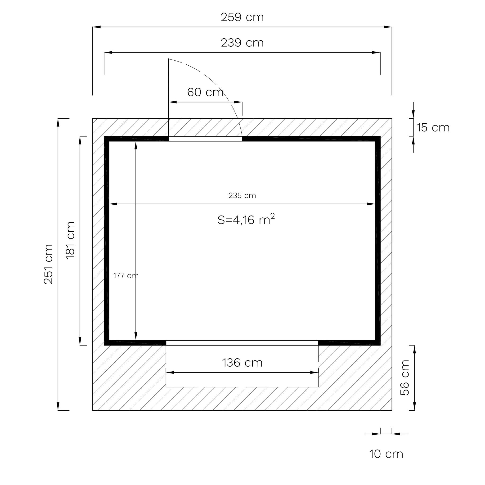 | Dimensions murales (L x H) sans avancée de toit | 239 x 181 cm |